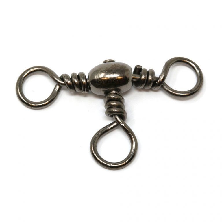 Based around the barrel swivel, the three-way swivel features a third central eye that comes out of the main body. The three-way swivel is useful for attaching a hook length to the middle eye with the mainline and lead coming off the first and second eye, a great choice when live baiting. They are also useful when lure fishing, with the middle eye ideal for attaching a lead with the hook length to the lure coming off the second eye. A versatile swivel that can be used for all manner of fishing setups.
