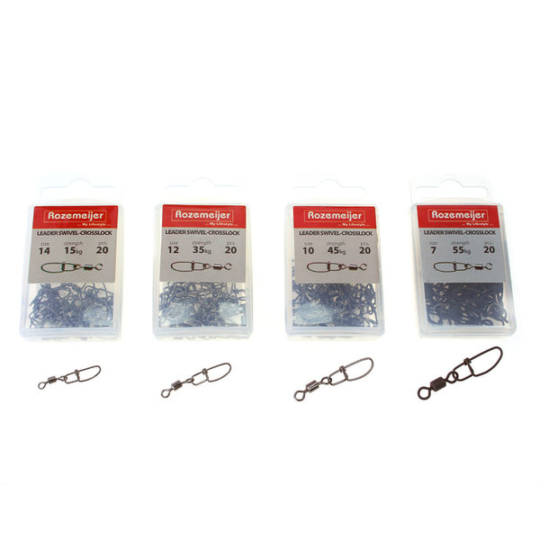 Topkwaliteit leader swivel-crosslocks. Verkrijgbaar in de treksterktes 15, 35, 45 en 55 kg. Speel op safe, en neem ze van Rozemeijer. Ze stellen niemand teleur! 20 stuks in een handig opbergdoosje.